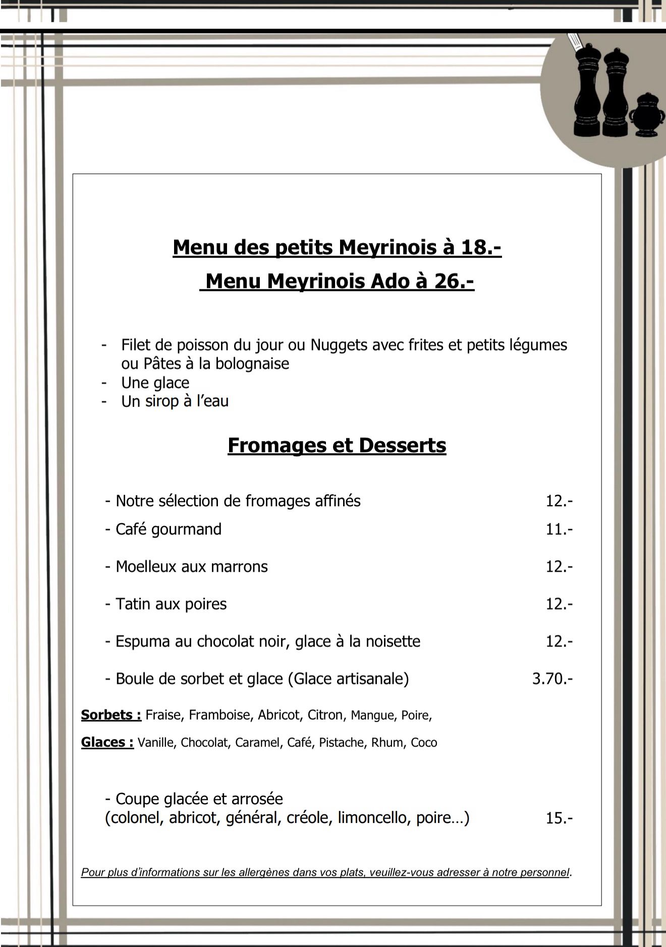 Notre menu pour les petits Meyrinois , fromages et douceurs du moment...