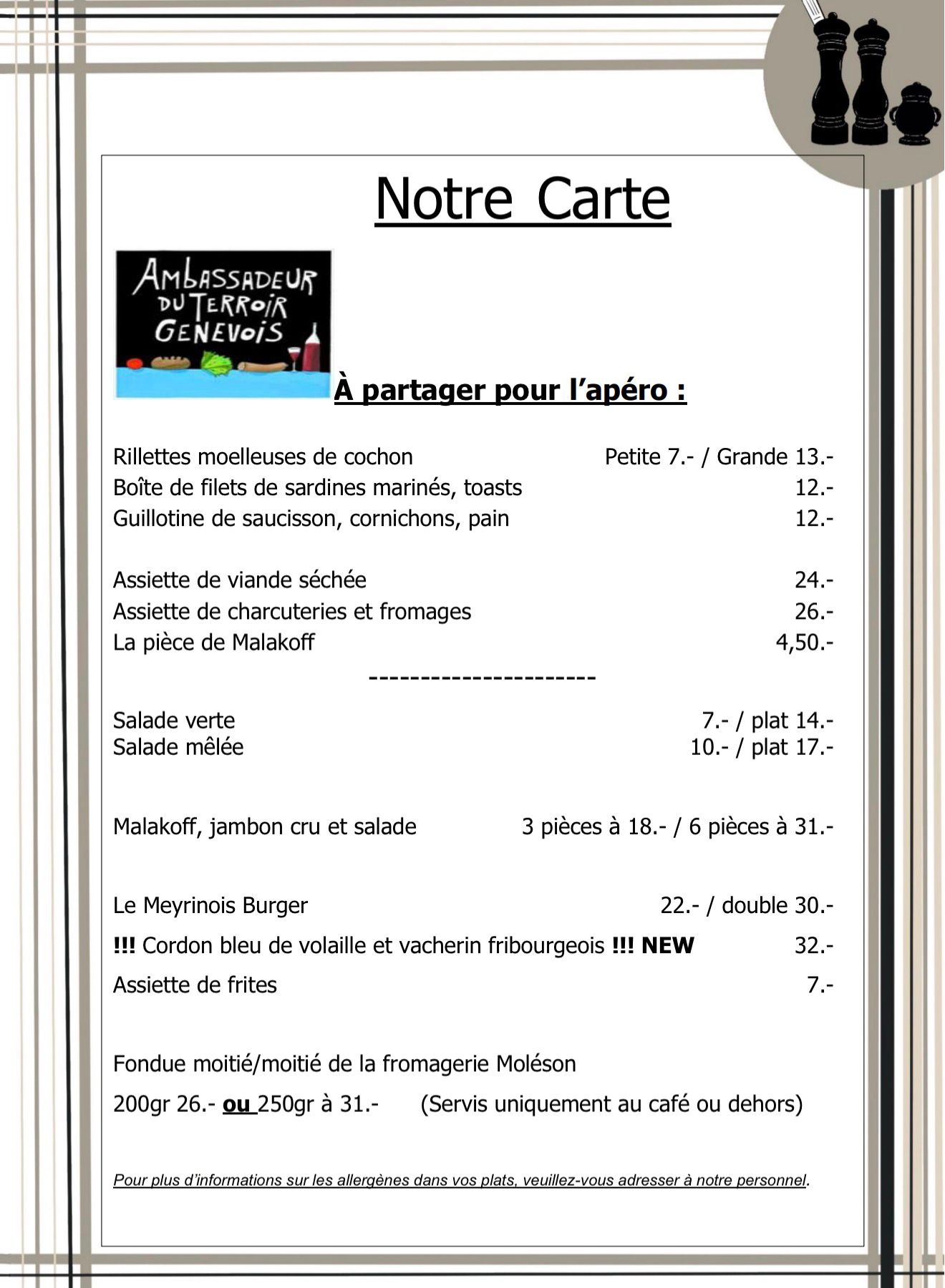 Notre menu